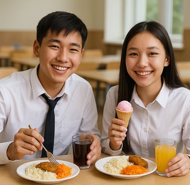 Our on-site school cafeteria serves a variety of fresh food, fruits, and nutritious drinks daily. We also feature an ice cream parlour, operated by dedicated staff, to offer occasional treats in a controlled and hygienic setting. To promote healthy eating habits, fast food and energy drinks are strictly prohibited on school premises. Instead, we proudly serve traditional Kazakh cuisine, prepared with balanced nutrition in mind. The school nurse collaborates with the cafeteria team to ensure all menu items meet students’ dietary and health needs.
