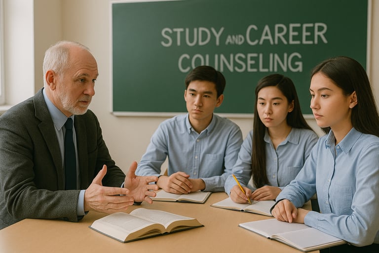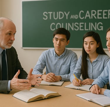At Almaty-Finn, our professional counselor offers personalized support to help students overcome academic challenges and plan their futures. The counselor works with teachers to identify learning gaps and implement tailored solutions such as extra coaching and study plans for those struggling in specific subjects. Students also receive guidance on career exploration, university admissions, and essential life skills like goal setting and time management through one-on-one sessions and workshops, empowering them to reach their full potential.