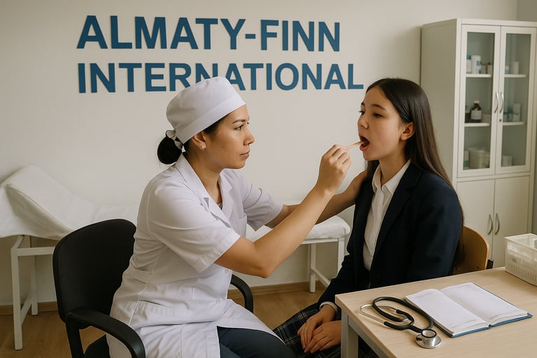 At Almaty-Finn, we prioritize the health and well-being of every student. We offer a 100% free on-campus medical facility during school hours, staffed by a full-time qualified medical nurse. The school nurse develops medical records for all students and provides free medical consultations as needed. These services are provided at no extra cost to parents.