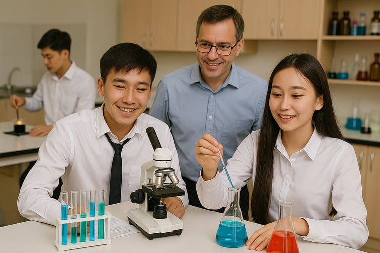 To cultivate a strong foundation in scientific inquiry, Almaty-Finn offers dedicated science laboratories for Physics, Chemistry, and Biology. These labs are fully equipped with modern instruments and materials, enabling students to engage in hands-on experiments under the close supervision of experienced subject teachers. Conducting real-world experiments helps students strengthen their understanding of theoretical concepts, develop critical thinking skills, and grasp the principles of scientific reasoning and analysis. Our lab-based learning approach is designed to make science engaging, practical, and deeply educational.